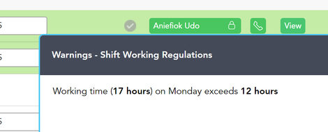 Alerts for all working time regulations including maximum working hours per week, shifts worked in a row, minimum break and shift length.