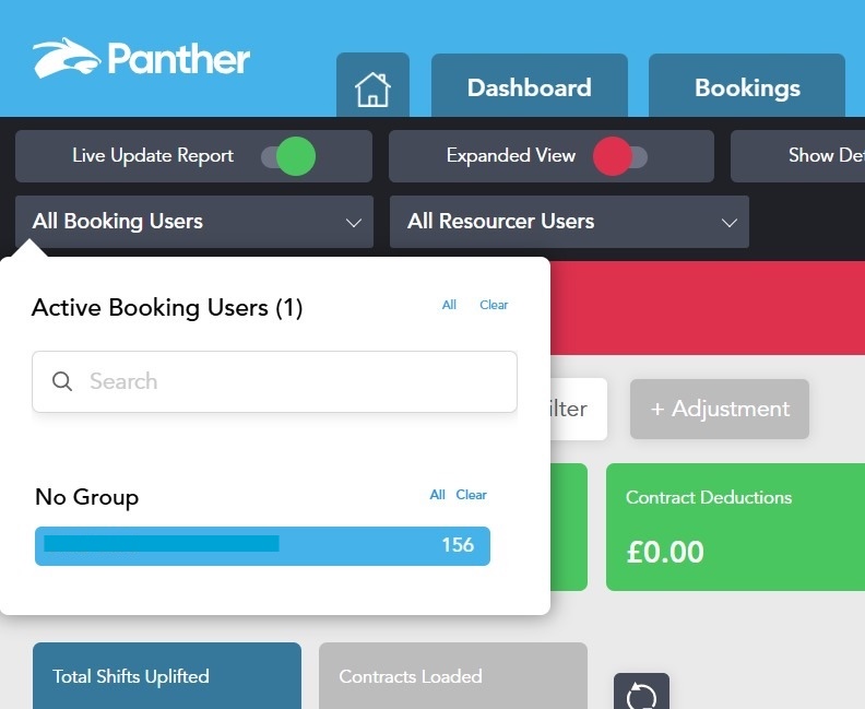 The GP Report now includes Booking User and Resourcer User filters in the top black bar, matching the Bookings tab and defaulting to All on load. Shifts are correctly attributed to the booking sheet user and resourcer user, helping users analyse GP by owner and supporting clearer reporting for performance tracking and potential commission calculations.
