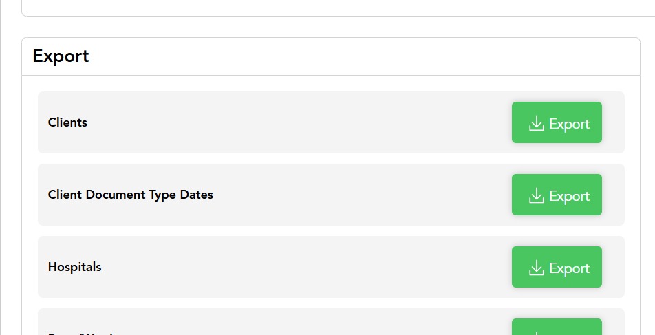 Client Document Type Dates Export